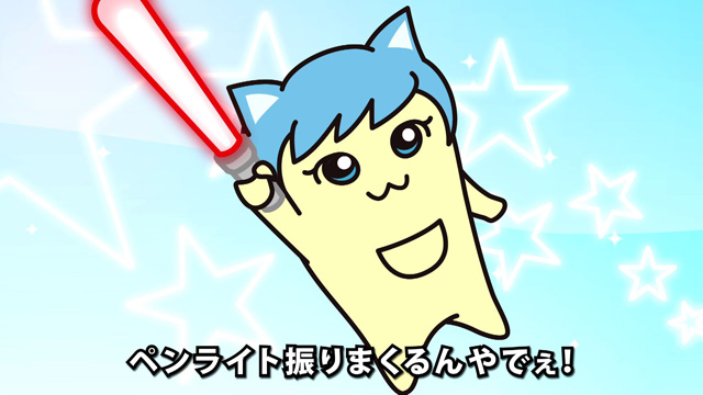 会場内はどよめきが上がり、観客は突然流れ始めた映像に釘付け。KAKUSENくんを知らない人も、「にゅるズ」の乱入に大盛り上がりでした。渡部優衣さん演じるニュルにゃんが「ペンライト振りまくるんやで!」と呼びかけると、会場一面が光の海へと変貌!