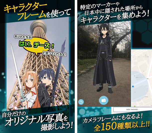 映画館情報やチケット情報はもちろん、今後のSAOの予定も簡単にチェックできたり、スマートフォンの位置情報を利用して、日本中の特定の場所や、特定のマーカーからAR(拡張現実)を使ってキャラクターやモンスターを手に入れることができます。