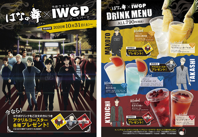はなの舞池袋西口公園前店のコラボ開催が決定しました。マコト・タカシ・キョウイチをイメージしたコラボドリンクがアルコール&ノンアルコールで展開。コラボドリンクをご注文の方につきアクリルコースター各種プレゼント!
