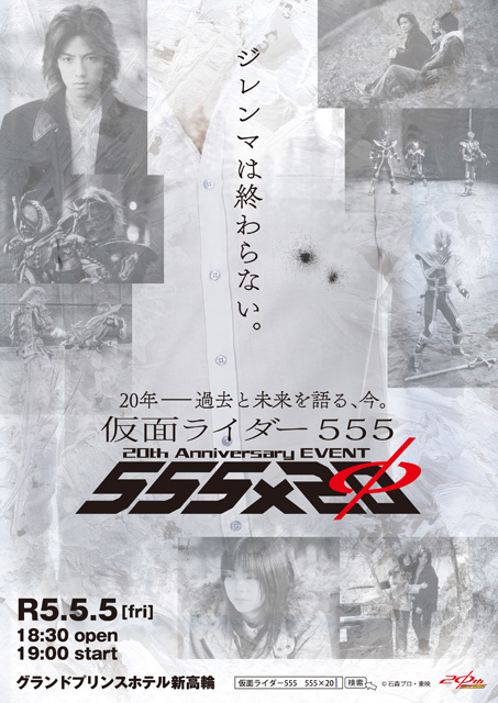 そして最終日、令和5年5月5日(金・祝)。三つの「5」が並ぶ夜に行われるのは、“『仮面ライダー555』20th Anniversary EVENT「555×20」”。『仮面ライダー555』放送開始20周年を祝して、オリジナルキャスト、スタッフが集結。20年という長い年月を経た今、”これまで“と”これから“を語るスマートな一夜をお届けします。