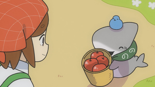 木々に実るたくさんのりんごを見て、嬉しそうな子ザメちゃんだったが、いざとろうとすると手が届かなくて……。