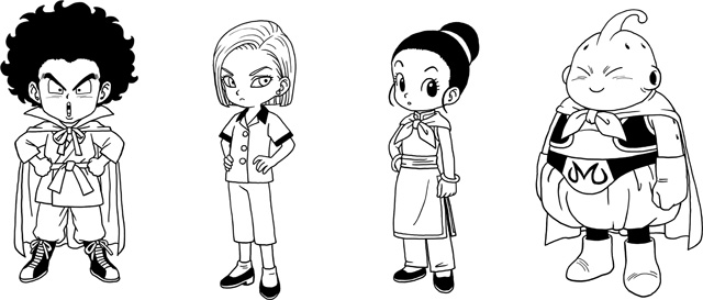 ・小さくなったミスターサタン、人造人間18号、チチ、魔人ブウ。