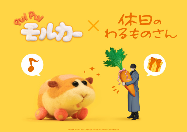 わるものさんがモルカーの虜に!? 『PUI PUI モルカー』と『休日のわるものさん』のコラボWebビジュアルが解禁となりました。解禁されたビジュアルには、瞳を輝かせるモルカーのポテトと、ポテトへのプレゼントのニンジンを抱えるわるものさんの姿が。物語ではパンダに夢中のわるものさんを、キュートなモルカーが魅了!?
