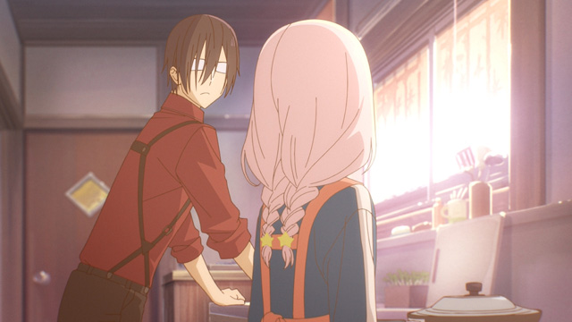 晩ご飯は、白夜の手作りハンバーグ。その形が星とハートで、動揺するミラ。
