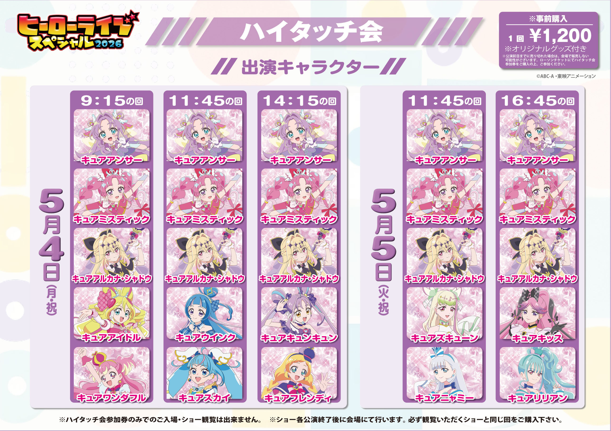 5月3日~5日にグランドプリンスホテル新高輪にて開催される「ヒーローライブスペシャル2026」。その終演後に開催されるハイタッチ会&撮影会に登場するキャラクターが解禁されました。3日間で総勢35人のヒーロー&プリキュアが参加します。