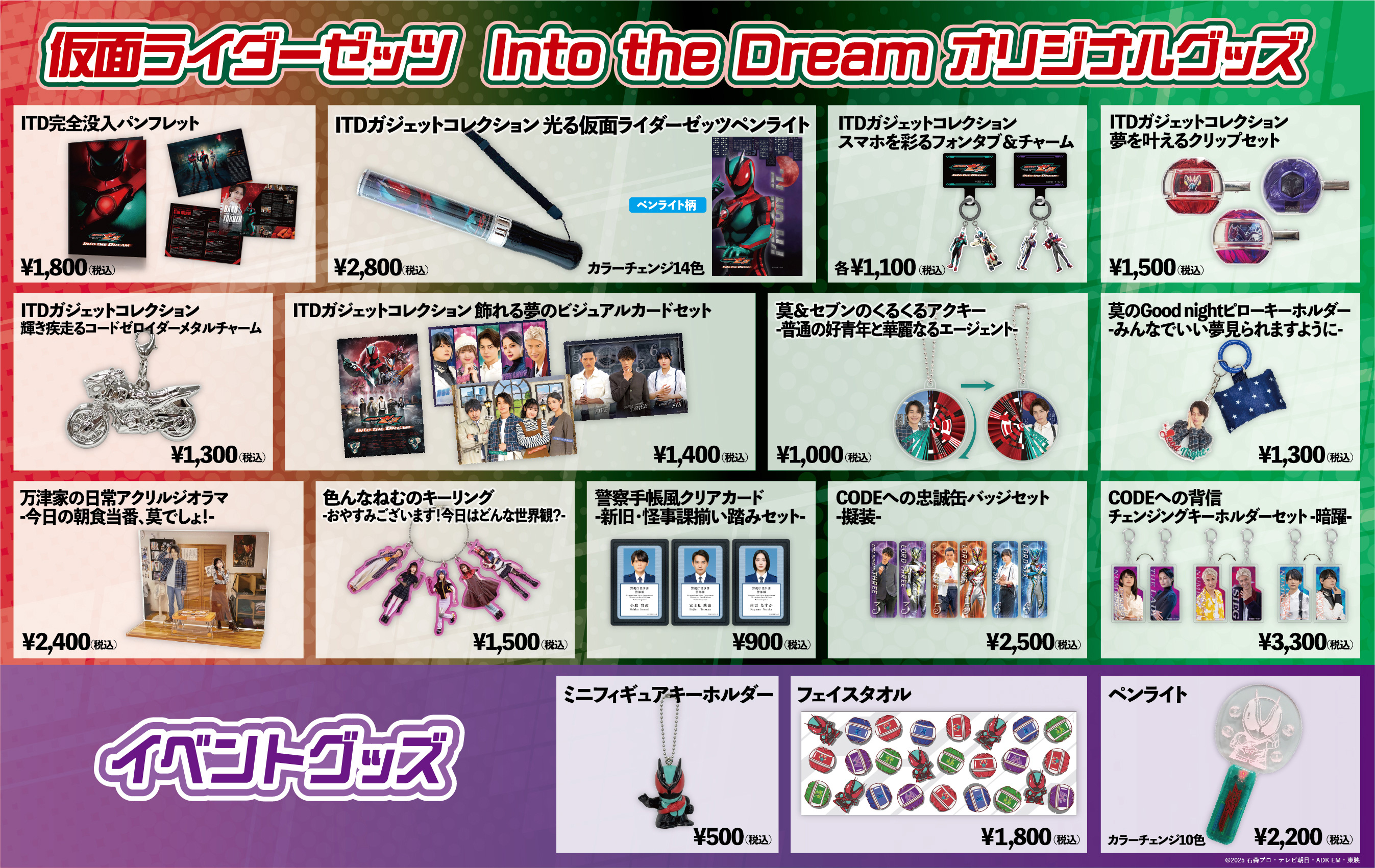 本イベントのオリジナルグッズが発表されました。キャストインタビューや16名の番組スタッフの“こだわりポイント”が掲載された「ITD完全没入パンフレット」やペンライト、ビジュアルカードセット等、全14種のアイテムがラインナップ。
